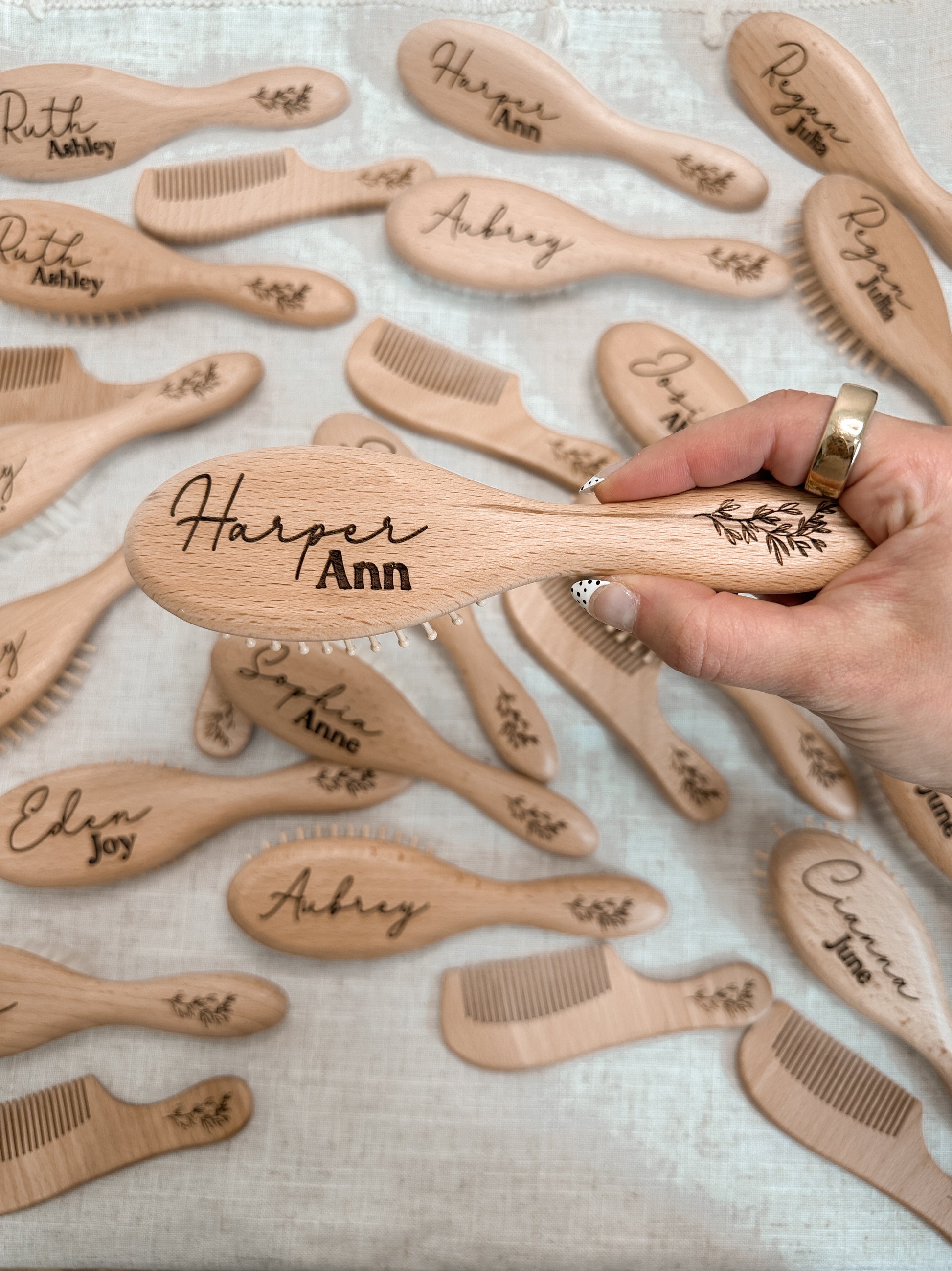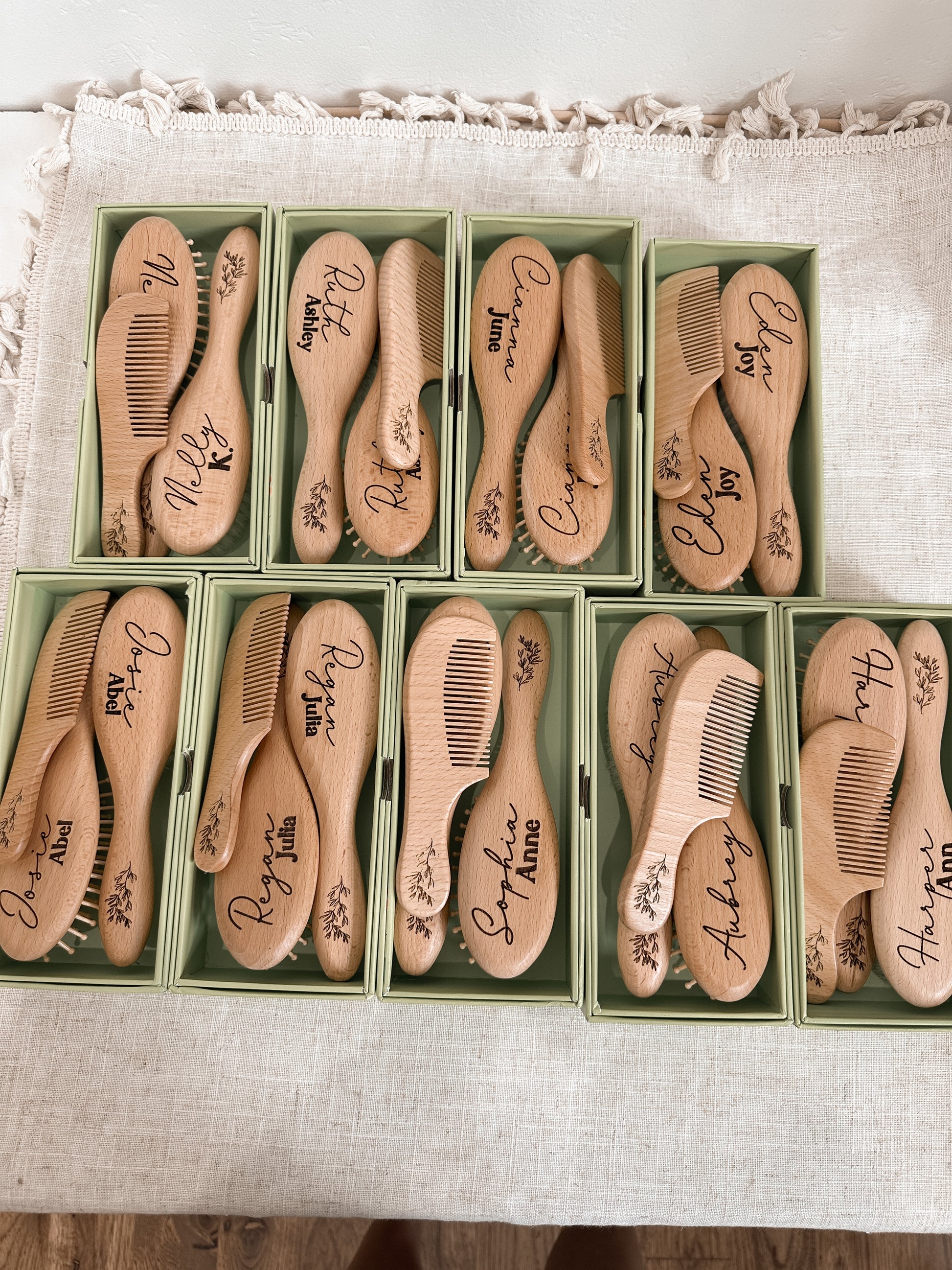 Gift a timeless keepsake with our personalized baby hair brush and comb set, custom engraved for a special touch—perfect for welcoming a new arrival!